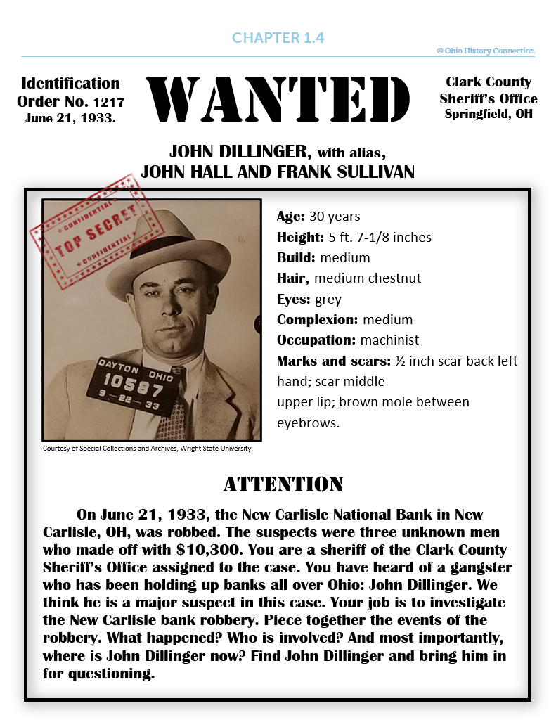 Example intro page for a CSI activity in Ohio as America, teaching primary and secondary sources based off a new case we studied at OHC exclusively for this activity.